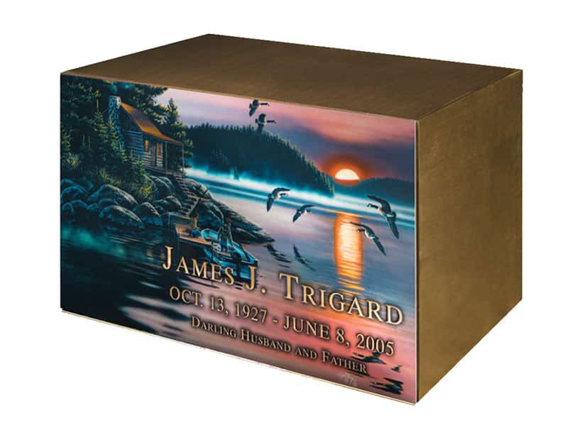 The Flag Case with Pedestal Urn – Cherry includes an heirloom quality flag case with glass front, which is able to display a 5 foot x 9.5 foot burial flag (flag not included). The second piece of this memorial set is the urn itself, which is made of solid cherry and acts as the pedestal for the flag case.