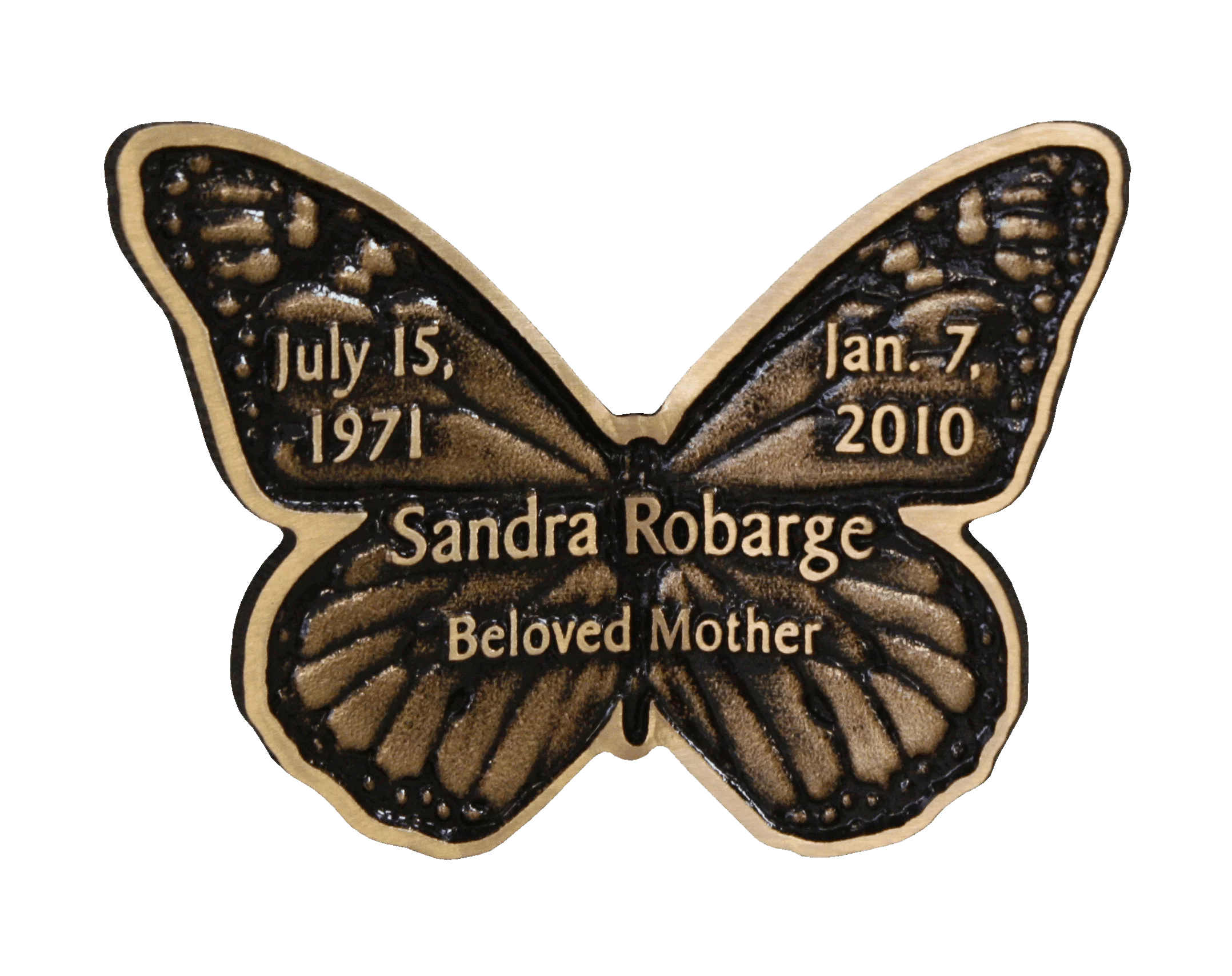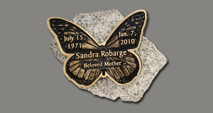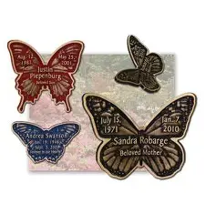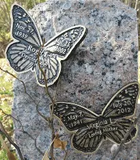 Butterflies are drilled for two lugs on the back for mounting and can be attached to a piece of granite or a stake.