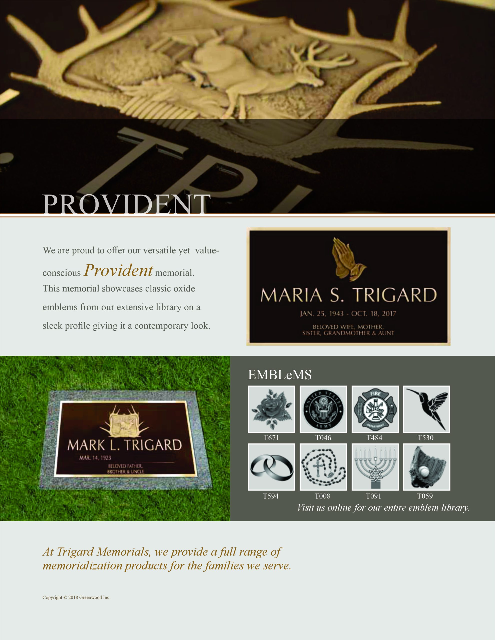 Individual Memorials include 1 name, 1 set of dates, 5 words, 1 emblem; Companion Memorials include 2 names, 2 sets of dates, 10 words, 2 emblems